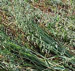What is not normal plant response, is that only a small percentage of the plants have begun growing upwards in a normal phototropic response, as shown in this photo. The majority of plants, one week after the event was discovered, were still green and growing, but remained horizontal. See larger photo. |