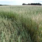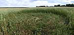 We visited the formation on August 26, eight days after its discovery. Edges between standing and laid crop are crisp. Plants are either bent over hard at the soil level or are completely upright. |