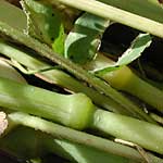 NODES Stem nodes in formation plants were swollen. We didn't notice any blown or stretched stem nodes while in the field. However, upon examination of the samples we brought home, we found marked differences between the crop formation and standing plants. See close up photos for comparison. |