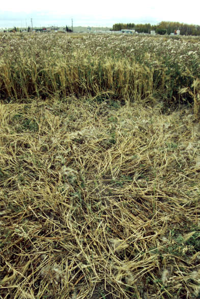 ![]() This is the east circle. Although the standing tufts are slightly swirled, the floor lay was predominantly radial. Notice what may be other circular patterns in the lay. These are not discernable from the ground. This photo, © R. Manuel, was shot from an 80 foot boom lift. |