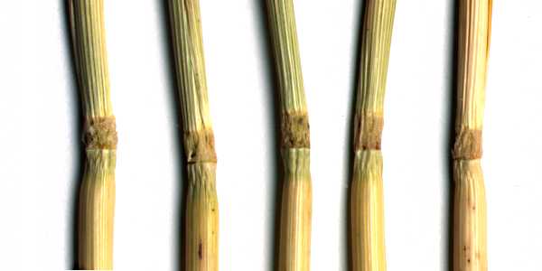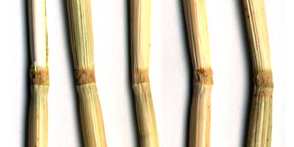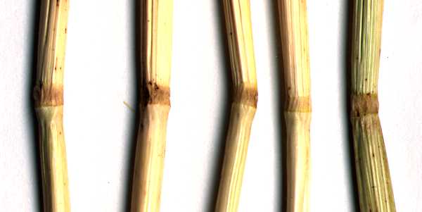 FORMATION NODES I think I can safely say that every laid barley plant in this formation had node deformities of some sort. All images on this page are actual barley stalks scanned on a flatbed scanner at 300 pixels per inch (118 pixels per centimeter), so the magnification is constant among all images. Here is a scan of rulers that will open in a new browser window. You can use it as a scale. The following three scans are from the same five plants collected