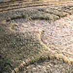 A steady stream of traffic whizzes by on two major streets, but motorists can't see what's nestled in the adjoining field. Every few minutes aircraft pass overhead on flight paths to and from two airports. This formation lies within city limits of Edmonton, population 624,000. The circles were discovered on September 21, 1999, by farm workers spraying the field. Seven circles of flattened plants comprise a formation about 190 feet