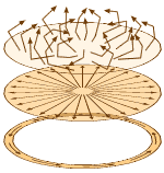 The lay of the crop in all seven circles is radial, but a narrow clockwise ring borders each circle. At left is an exploded view of the three different actions that seem to have affected the plants. |